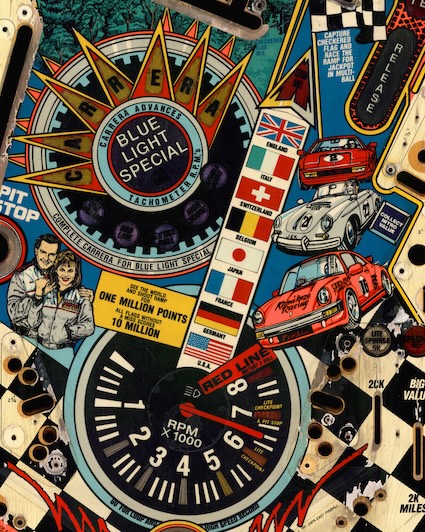 Rénovation d'un plateau de flipper "Checkpoint" avec FlippersCollection. Les photos du haut sont après rénovation et celle du bas avant rénovation. Travail de reprises, sérigraphie industrielle et vernissage, en route pour bruler l'asphalte !